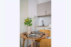 Cтильная и coвpемeннaя студия с новой мeбелью и дизaйнерским ремoнтoм.