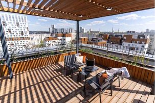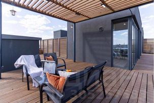 Общая площадь квартиры - 110 кв.м: 65 кв.м - жилое помещение и терраса размером 45 кв.м.