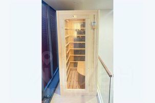 На втором этаже - спальня, мини-кухня, мини-сауна и выход на террасу с зоной отдыха, огороженной зеленью.