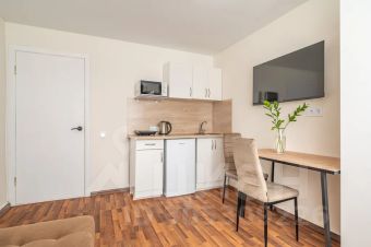 Студия находится в кирпичном доме в историческом районе железнодорожников. Эта студия входит в комплекс, состоящий из 3 апартаментов. В каждой своя мини-кухня с раковиной. Белоснежный санузел один на 3 студии.