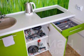 Оборудованная кухня (холодильник, варочная панель, микроволновая печь, чайник).