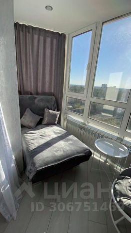 Панорамные окна выходят на солнечную сторону. Окна не оборудованы шторами. Шторы висят между комнатой и зоной отдыха.