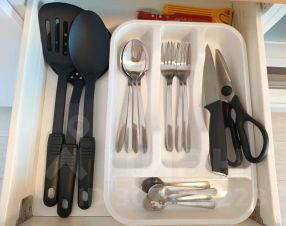 Новую посуду в едином стиле и кухонные принадлежности
