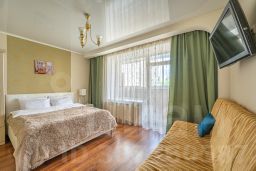 В распоряжении гостей две спальни, кухня, прихожая, балкон и два санузла. В апартаментах сделан современный ремонт с применением качественных отделочных материалов. В наличии вся необходимая мебель и техника: две двуспальные кровать размера "Queen Size