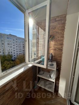 Балкон-лоджия декорирован, чист. Вид из окон со стороны кухни и комнаты во двор. Шторы на всех окнах.