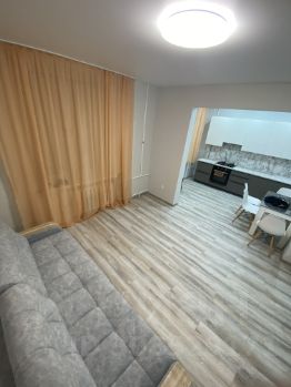 Студия с евроремонтом, поэтому вы сразу почувствуете себя как дома. В квартире есть вся необходимая мебель: на кухне и в комнате, а также техника — холодильник, телевизор и стиральная машина. Ванная комната оборудована ванной, что обеспечит вам комфортное проживание. Окна выходят во двор, поэтому вас не будут беспокоить шум и суета улицы. Двор оснащен детской площадкой. Рядом аллея для вечернего променада.
