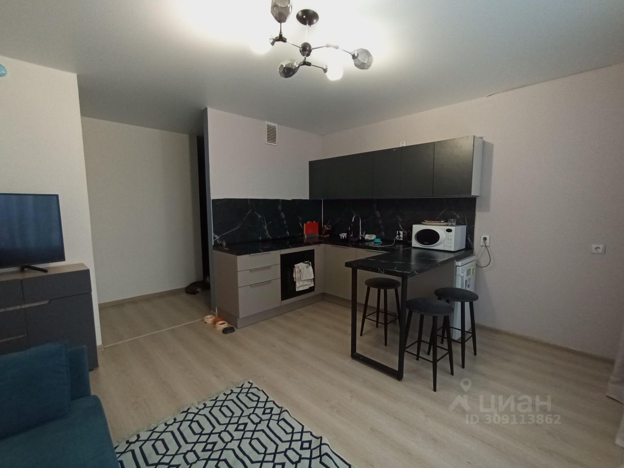 В кухне-гостинной телевизор, посудомоечная машина 60 см, плита, духовка, микроволновая печь, холодильник, остаются все кухонные принадлежности.