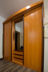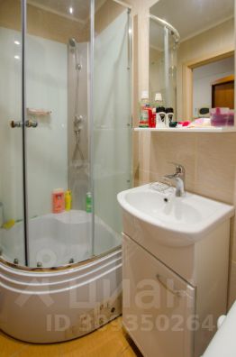 - Совместный санузел с современной душевой кабиной и раковиной.
