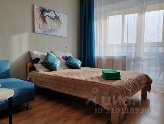 В квартире уютный ремонт в тёплых тонах, ламинат, кафель, москитные сетки на окнах. Большая стеклянная лоджия со столом и стульями, с видом на внутреннюю территорию с высокими деревьями. В комнате расположены: двухспальная кровать, шкаф, скоро будет диван. Для досуга есть ЖК-телевизор с цифровым TV и высокоскоростной Wi-Fi. Изолированная кухня оснащена кухонным гарнитуром, техникой, посудой для приготовления.