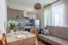 Для гостей в квартире предусмотрены WI-FI и TV, есть шкаф для хранения вещей. Кухня: плита, СВЧ печь, холодильник, духовка, чайник, фильтр для воды, набор посуды. Ванная комната: ванна, стиральная машина, полотенца, утюг, гладильная доска, сушилка, фен, гель для душа, шампунь, мыло, зубная паста.