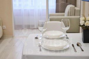 Квартира расположена в новом доме с закрытой территорией без машин, во дворе имеются детские и спортивные площадки.