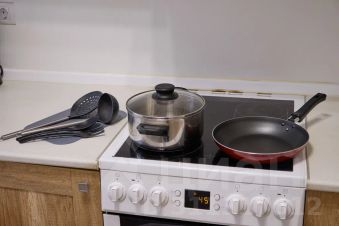 Оборудованная кухня (холодильник, варочная панель, микроволновая печь, чайник).