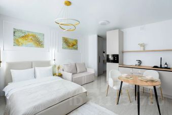 Современная мебель, посуда, бытовая техника. Заправленное постельное бельё, полотенца, одноразовые губки, тряпочки. На кухне есть вся необходимая посуда для приготовления пищи.