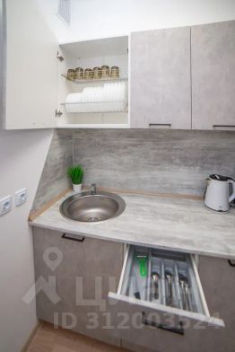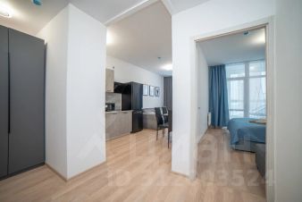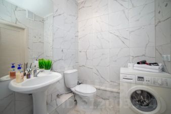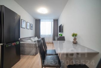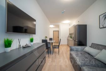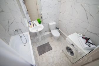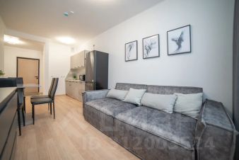 Апартаменты обставлен со вкусом новой современной мебелью в светлых тонах с яркими акцентами в кухонной и ванной зоне.