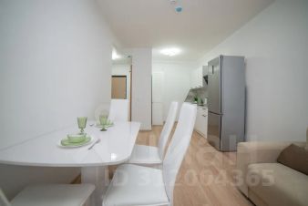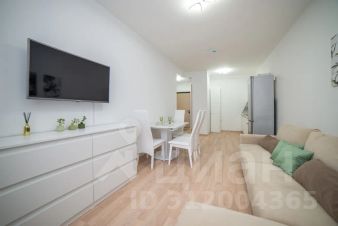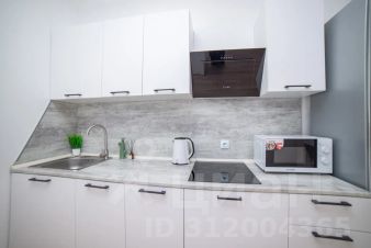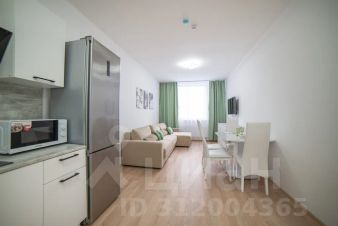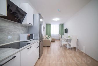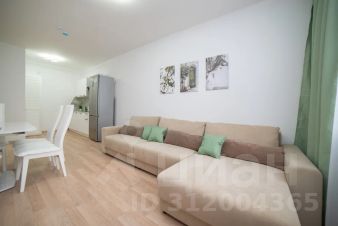 Апартаменты обставлен со вкусом новой современной мебелью в светлых тонах с яркими акцентами в кухонной и ванной зоне.