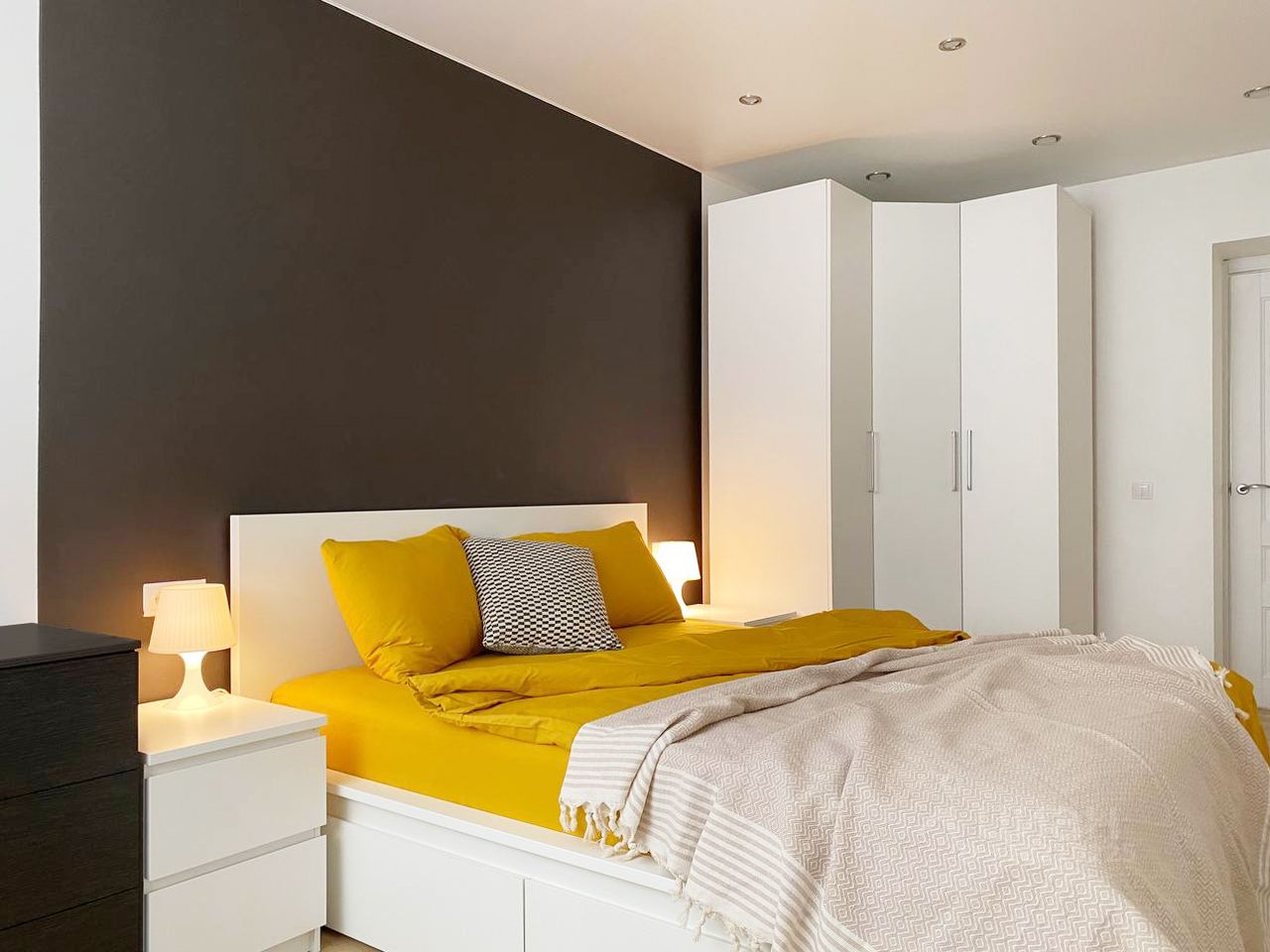 В спальне - 2х-спальная кровать с ортопедическим матрасом.
