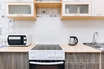Из мебели: двухспальная кровать, три 2-х спальных дивана, (один в комнате, второй в коридоре, третий на кухне) шкаф-купе, журнальные столики, на кухне- кухонный гарнитур, диван. Из техники: 2 жк телевизора, dvd, холодильник, плита, чайник, фен, утюг, стиральная машина.
