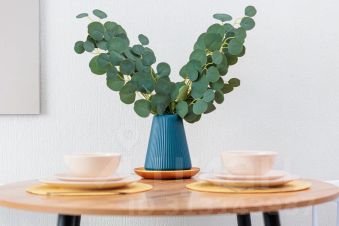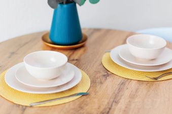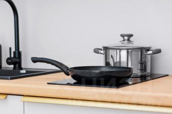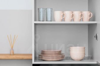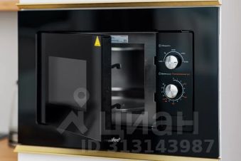 Удобная обеденная и кухонная зона с набором посуды, плитой, микроволновой печью;