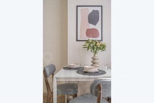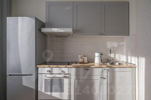 - Оборудованная кухня - чайник, варочная панель, холодильник с морозильной камерой и набор посуды в едином стиле — всё для вашего удобства