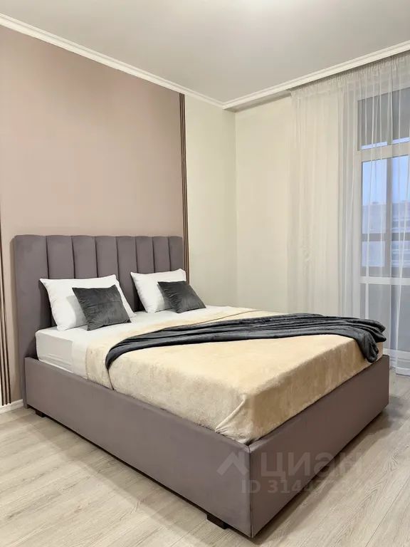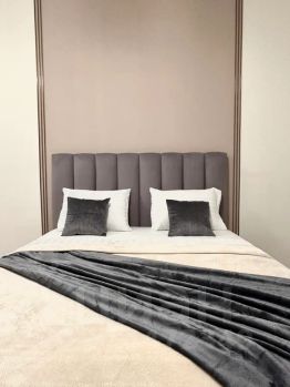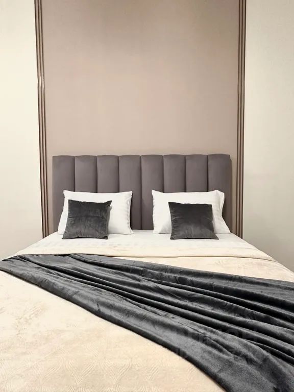 - Просторная спальная зона с комфортной двуспальной кроватью. Мягкие подушки и плед добавляют уюта.