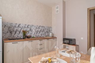 Кухня: электрическая плита, СВЧ печь, холодильник, чайник, фильтр для воды, набор посуды.