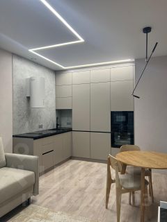 В квартире выполнен дизайнерский ремонт, что придаёт ей современный и уютный вид. Вся необходимая мебель уже на месте, как на кухне, так и в комнате. Встроенная техника включает кондиционер, холодильник, посудомоечную машину, телевизор и стиральную машину, поэтому можно сразу заезжать и наслаждаться комфортом. Ванная комната оборудована современной ванной, а окна выходят во двор, что обеспечивает тишину и спокойствие. Также есть лоджия, где можно отдохнуть после рабочего дня.