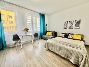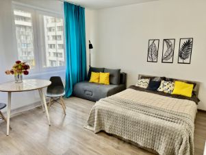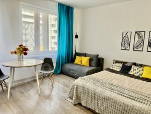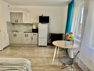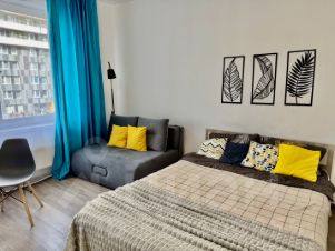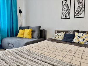 В квартире свежий ремонт, новая мебель, двухспальная кровать, уютная кухня, красивый вид из окна, с удобной парковкой.