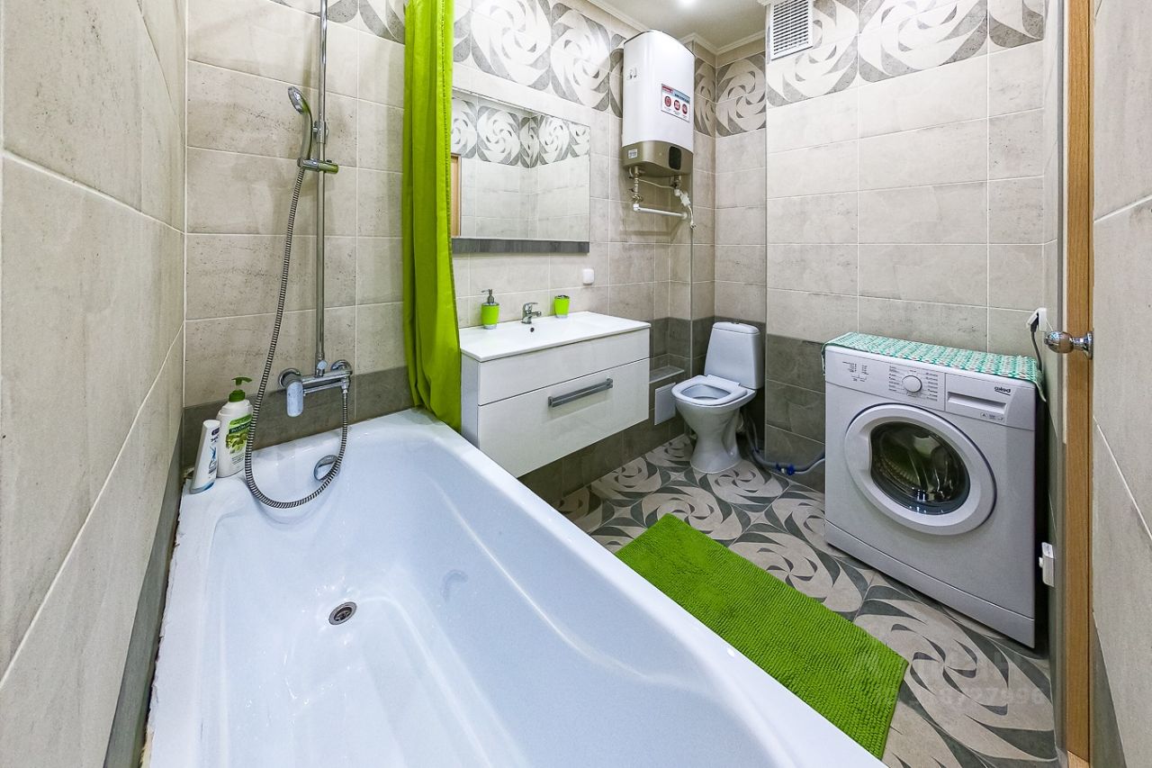 Однокомнатная квартира - в новостройке. На кухне - двуспальный диван, в комнате двуспальная кровать. Квартира со всей необходимой бытовой техникой - стиральной машинкой, феном, утюгом. На кухне - холодильник с морозилкой, микроволновка, плита, чайник и посуда для приготовления еды. Дом - новый, ухоженная придомовая территория и детская площадка. Совсем рядом находится ТЦ "VEERMOLL", Омега, воинская часть на Космонавтов, супермаркеты "Лента, Монетка" и "Пятерочка". Удобная транспортная развязка - выезд на Верхнюю Пышму", но и до центра города 10 минут на такси или транспорте