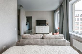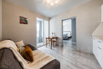 С удовольствием представляем вам просторную однокомнатную квартиру на 7 этаже. Новый дом, тёплый балкон, много света в квартире, красивый вид на зелёный двор. Современный стильный ремонт, есть вся необходимая мебель и техника.