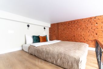 В квартире сделана продуманная надстройка-мезонин с комфортным двуспальным местом (матрас 2000х1600). Для вашего удобного подъема на второй ярус установлена надежная лестница, выдерживающая нагрузку более 200 кг.