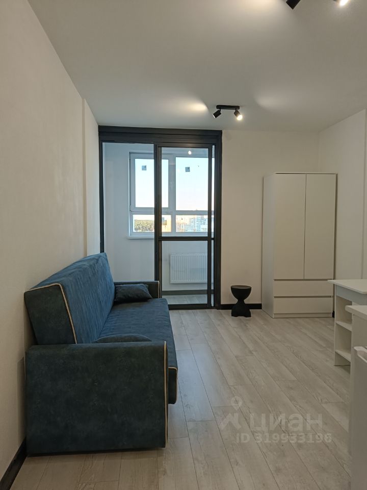 Сдается студия на 22 этаже современного монолитного дома 2024 года постройки. В квартире выполнен свежий косметический ремонт. Из мебели — кухня, холодильник, удобный диван и шкаф.