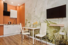 На кухне имеется необходимая бытовая техника, набор посуды и столовых приборов.