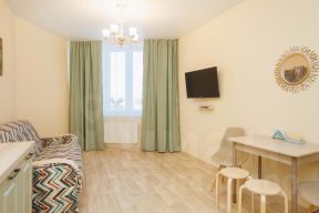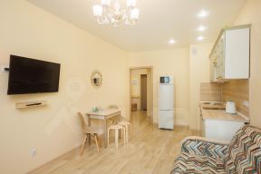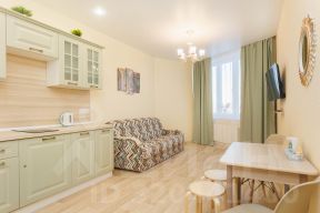 На кухне-гостиной смогут разместиться еще два гостя - здесь установлен диван-кровать. В каждой из комнат есть телевизор - напротив спального места.