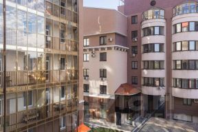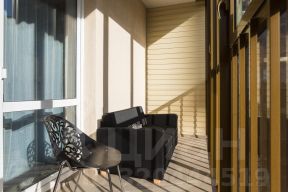 Большое панорамное окно, выход на застекленный балкон, окна выходят во двор.