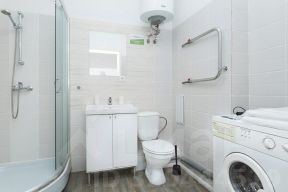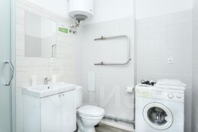 Санузел совмещенный, установлена душевая кабина, есть и стиральная машина, если потребуется привести вещи в порядок.