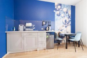 Квартира теплая и уютная, с ЖК-телевизором, безлимитным Wi-Fi, и оснащенной всей необходимой техникой кухней. Также есть утюг, стиральная машинка, сушилка для белья, гладильная доска - после дороги можно привести одежду в порядок. На кухне есть все, что необходимо для приготовления пищи - электрический чайник, микроволновая печь, электрическая плита, большой холодильник с морозилкой.