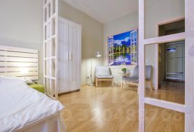 Квартира укомплектована ЖК-телевизором, безлимитным Wi-Fi, и оснащена всей необходимой техникой. Также есть утюг, стиральная машинка, сушилка для белья, гладильная доска - после дороги можно привести одежду в порядок. На кухне есть все, что необходимо для приготовления пищи - электрический чайник, микроволновая печь, электрическая плита, маленький холодильник.