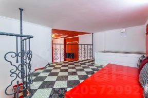 Витая лестница ведет на второй уровень, обрамленный кованными перилами. Здесь расположен большой раскладной мат, который можно использовать в качестве дополнительного спального места.