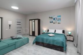 В комнате установлены двуспальная кровать и раскладное кресло на одного человека, напротив кровати - ЖК-телевизор.