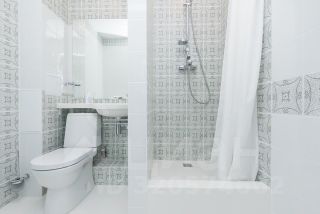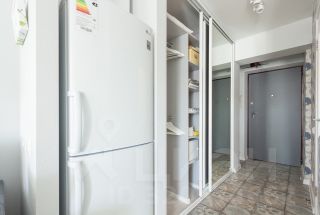 Спальная зона отделена от кухни-гостиной большим стеллажом. На кухне есть вся необходимая для приготовления пищи бытовая техника - варочная поверхность, духовой шкаф, большой холодильник, микроволновая печь, электрический чайник. Во всей квартире стоит система очистки воды, фильтры установлены даже в душе. В ванной - водонагреватель.