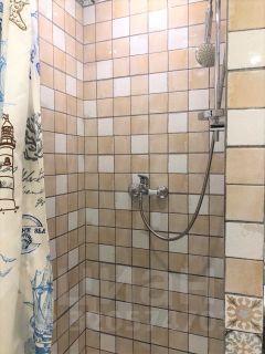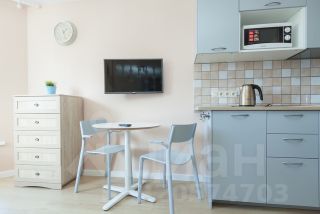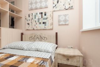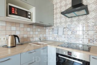 Квартира-студия, внутри разделена на две зоны - спальную и кухню-гостиную. Небольшой уютный уголок с полутораспальной кроватью и прикроватной тумбочкой спрятался за большим стеллажом, а кухня грамотно совмещена с гостиной зоной. Кухня укомплектована необходимой бытовой техникой - варочная поверхность, духовой шкаф, микроволновая печь, электрический чайник, большой двухкамерный холодильник. Напротив двуспального дивана - ЖК-телевизор с цифровым телевидением, для просмотра доступно более 100 каналов. Есть Wi-Fi.