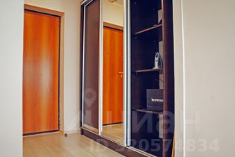 В прихожей стоит шкаф-купе с огромным зеркалом.