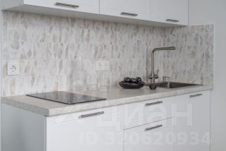 - Оборудованная кухня - чайник, микроволновка, варочная панель, холодильник с морозильной камерой и набор посуды в едином стиле — всё для вашего удобства .