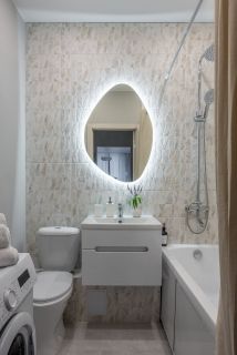 Полноценная ванная, стиральная машинка, гладильная доска, утюг, фен - наслаждайтесь приятными мелочами вдали от дома . Гигиенические принадлежности: тапочки, ароматный гель для душа, шампунь и зубные щетки — всё включено для вашего удобства .