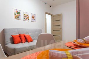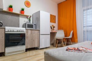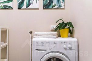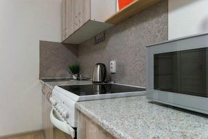 Апартаменты обставлены со вкусом новой современной мебелью в светлых тонах с яркими акцентами в кухонной и ванной зоне.