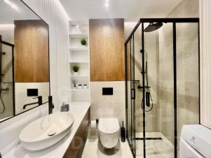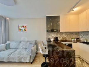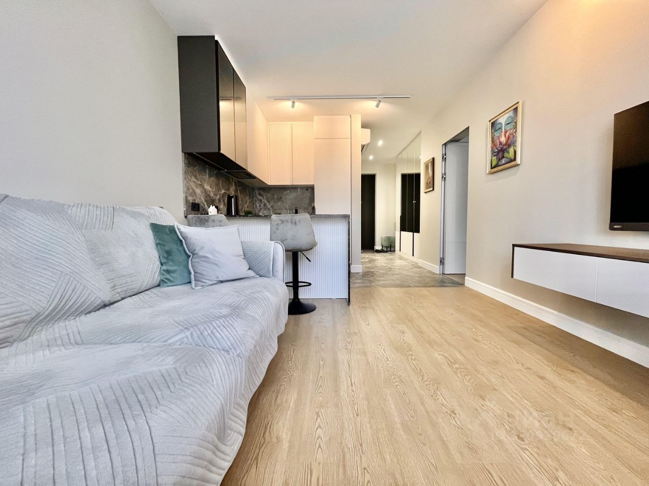 В квартире сделан дизайнерский ремонт. Просторная кухня оснащена всей необходимой мебелью и техникой, включая холодильник, посудомоечную машину и кондиционер. В комнате также есть мебель. Совмещённый санузел оборудован душевой кабиной. Приятным бонусом является наличие стиральной машины и телевизора. Интернет подключен, поэтому можно сразу начать пользоваться всеми удобствами.