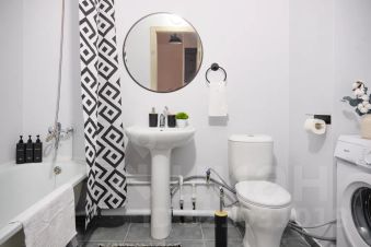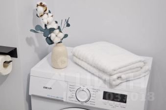 — в ванной комнате средства для принятия душа, мягкие полотенца, стиральная машина