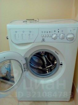 В санузле: ванна, раковина и стиральная машина-автомат Индезит.