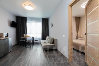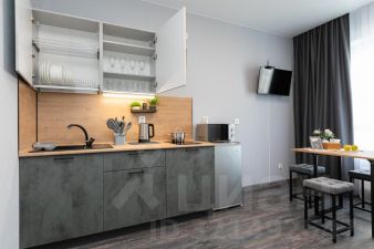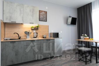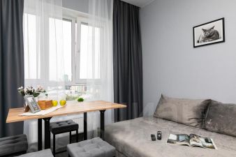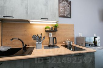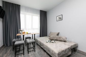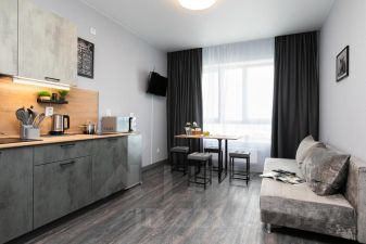 В квартире есть спальня с балконом и кухня-гостиная со всей необходимой техникой и приборами для приготовления продуктов. Обеденный стол расположен у окна для приятных видов во время завтрака на Екатеринбург в лучах рассвета.