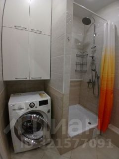 Санузел - душевая, унитаз, раковина, стиральная машина, шкафы, корзина д/белья.